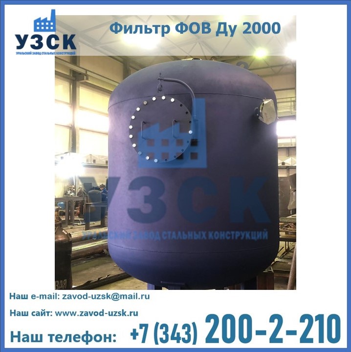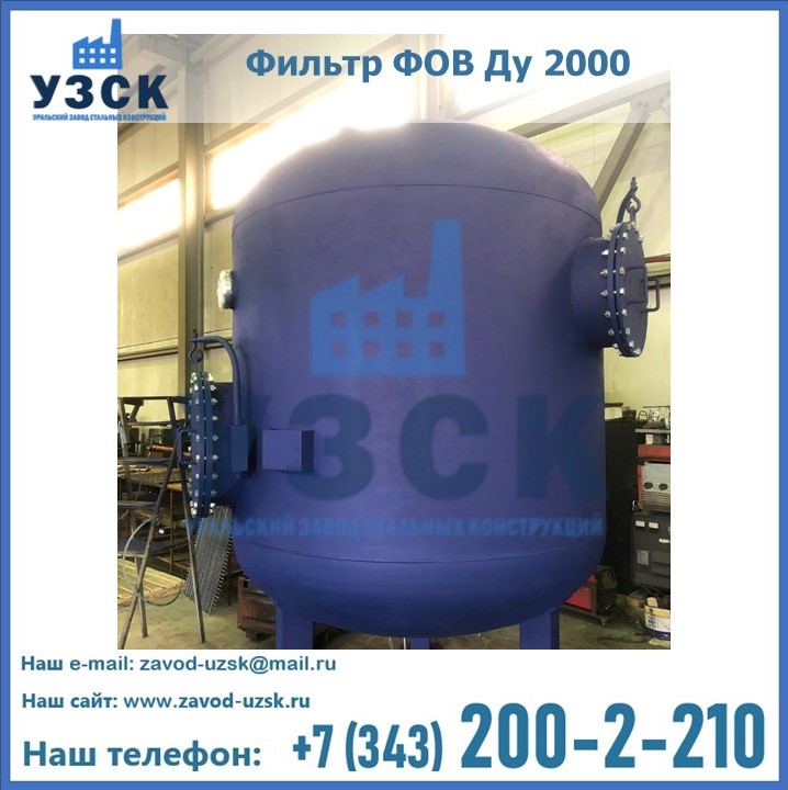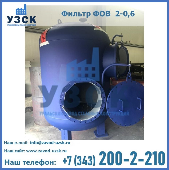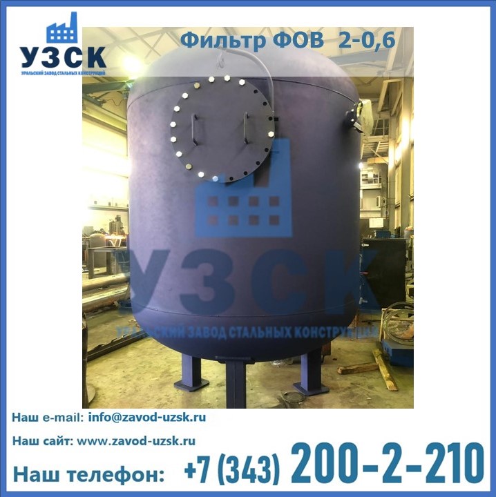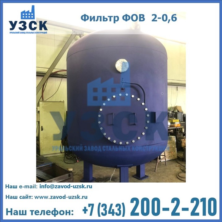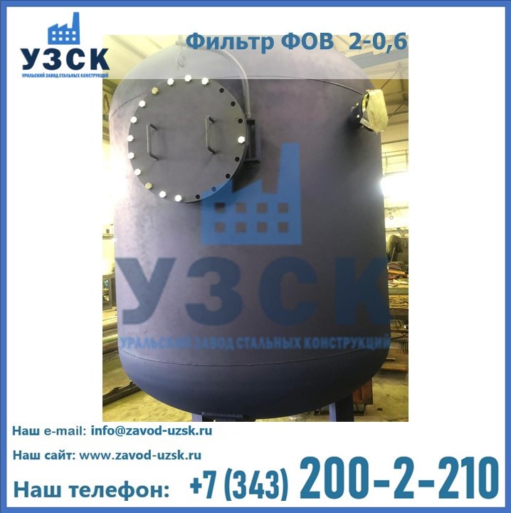 Удаление взвешенных веществ различного уровня дисперсности из рабочих жидкостей эффективно проводит фильтр осветлительный типа ФОВ (скорый или механический) — вертикально-цилиндрической формы установка, разработанная для систем водоподготовки различного класса. Оборудование представляет собой однокамерный агрегат для очистки воды рекомендованный для применения на станциях очистки стоков, в коммунальных котельных, на ТЭЦ, в промышленных отопительных системах и пр. Заказать производство ФОВ фильтров предлагает наш Уральский завод стальных конструкций в Армавире. У нас можно купить фильтрационное оборудование различного класса и типа, в том числе фильтры ФОВ из нержавеющей стали.