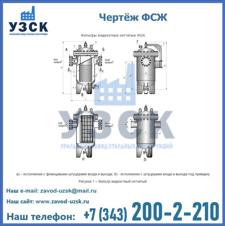 Очистку перекачиваемых жидкостей на предприятиях нефтяной, пищевой, горнорудной, фармацевтической и других отраслей промышленности эффективно выполнять с помощью жидкостного сетчатого фильтра — емкостное оборудование цилиндрической формы со съемной крышкой и элементом фильтрации внутри. Оснащенные им всасывающие линии насосных станций и установок защищены от проникновения твердых частиц в функциональные узлы гидравлической системы. Оборудование служит для перекачивания токсичных, агрессивных и иных эмульсий, суспензий, жидкостей. Купить фильтр сетчатый жидкостный ФСЖ в Армавире с гарантией производителя предлагает «Уральский завод стальных конструкций». Мы выполняем проектирование и изготовление ФСЖ по индивидуальным требованиям (климатическая зона, транспортируемая жидкость).
